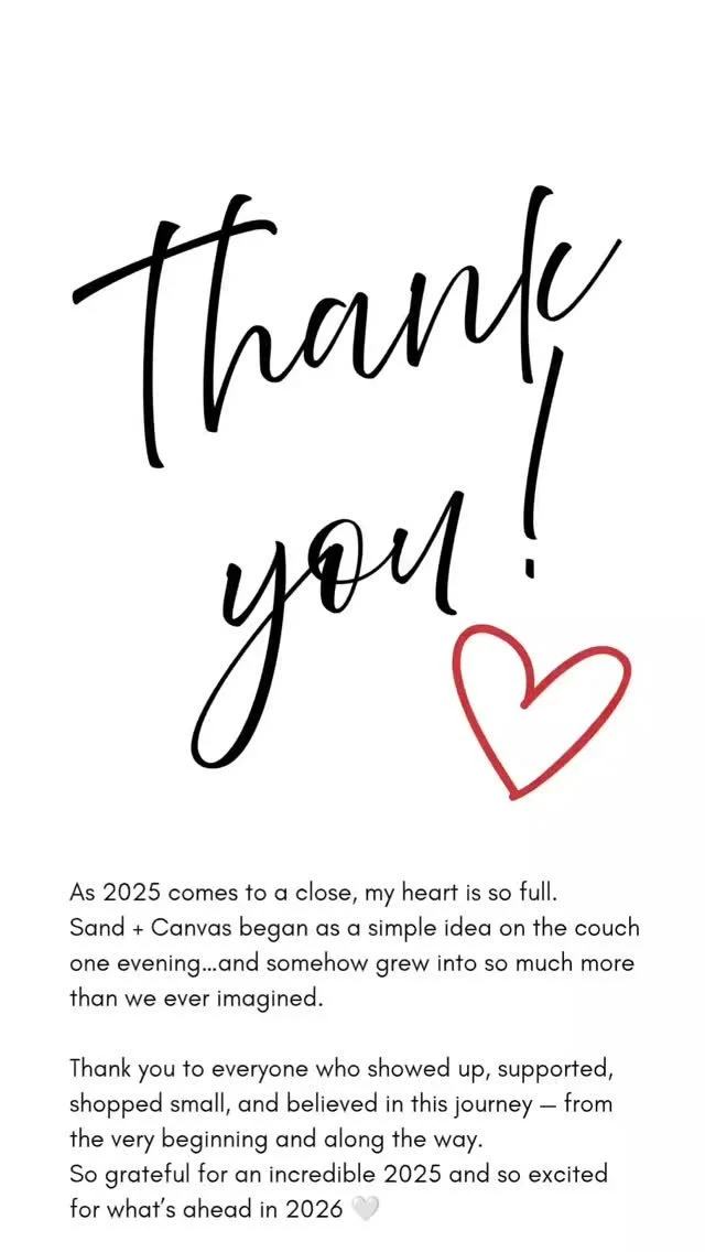 So grateful for everyone who supported Sand + Canvas in 2025. See you in 2026 🤍